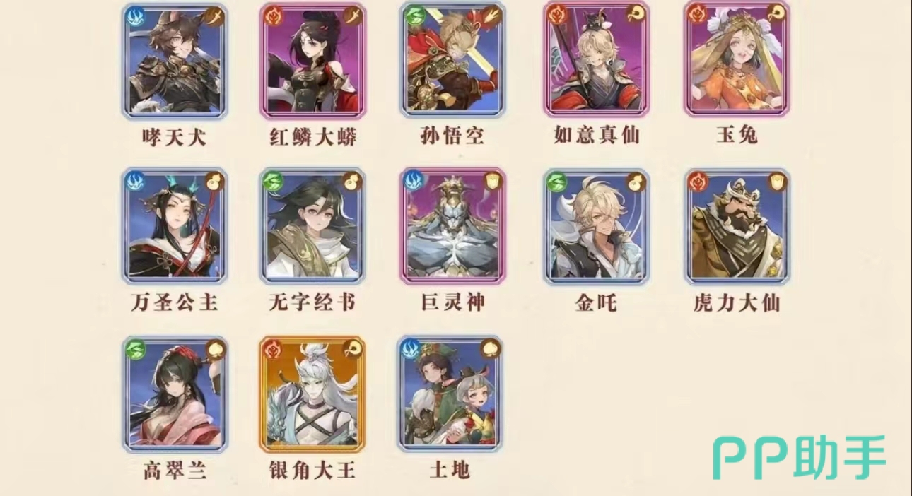 T2:这一级别是所有英雄角色里强度最弱的,主要有玉兔、土地、高翠兰、银角大王、如意真仙、虎力大仙和无字金书等。