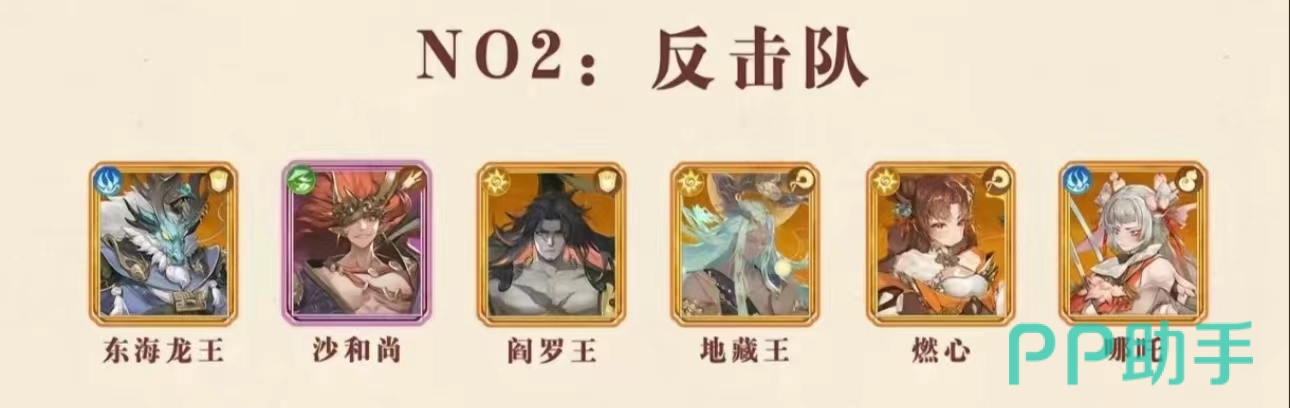 (1)阵容角色:孙悟空、黑熊精、红孩儿、地藏王、玉面孤狸、东海龙王。阵容点评:这一套阵容在新手时期,是非常无解的存在。本来孙悟空和红孩儿的打伤害能力就爆表,外加黑熊精的前排保护,和两个辅助角色的拉条增伤,非常适合新手用来开荒,能够帮助新手玩家在前期通过战斗积累经验资源,为后续游戏进行打下深厚的基础。
