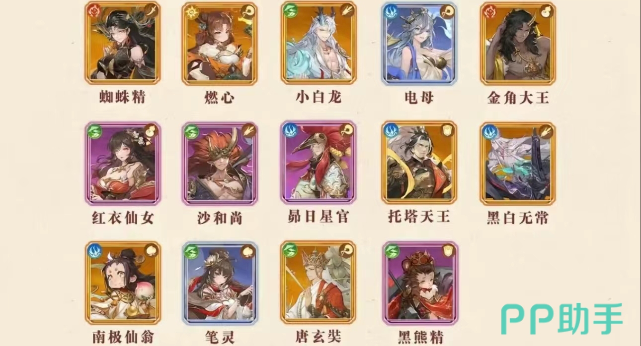 T1:T1相对与上一级别的英雄强度较弱,但也是游戏中强度位列前茅的英雄,主要有蜘蛛精、小白龙、金角大王、拖塔天王、南极仙翁、沙和尚、黑白无常和笔等。