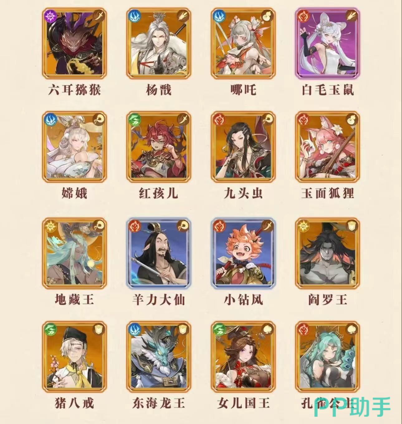 首先可以将游戏里的角色按属性分为辅助型、坦克型、输出型和治疗型。坦克型的主要英雄有阎罗王、猪八戒、东海龙王、黑白无常、托塔天王等,猪八戒和阎罗王是坦克型里面的T0级别,喜欢在前排吸引火力和起到一个团队保护盾的玩家可以选择坦克型的英雄;辅助型的英雄主要有地藏王、九头鸟、唐玄奘、沙和尚等,地藏王和九头鸟则是辅助型里的T0级别,在游戏中喜欢在后排发挥作用的玩家可以选择这一类角色,为队友提供增益效果和其它控制作用,配合队友去进行输出;治疗型的英雄主要有女儿国王、孔雀公主、南极仙翁和笔灵等,女儿国王和孔雀公主是这一类型里的T0级别,在游戏中扮演着奶妈的形象。在游戏中不擅长输出攻击偏向于辅助队友的玩家可以选择,及时治疗队友给队友恢复血量,保证团队稳定输出;输出型的英雄角色主要有哪吒、六耳猕猴、嫦娥、孙悟空等,喜欢攻击性的玩家可以去培养这些英雄,游戏中通过强大的输出能力可以给敌人大幅伤害。
