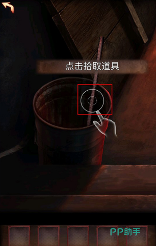 12、进入仓库后点击桌子获得撬棍,对左边红色的棺材使用撬棍获得纸人。