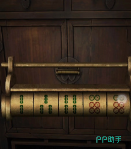 - 将铜片放在墙上的木牌上移动,使其对上花纹,得到花纹与字的对应线索。