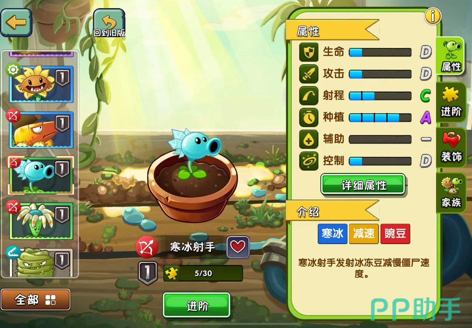 玩家在游戏中要时刻关注活动通知和经验的提升,游戏经验提升以后不要忘记及时的升级植物,初阶的植物只能应对低阶僵尸,要想取得游戏的长期胜利,必须进阶植物,建立一个强大的植物攻击团。
