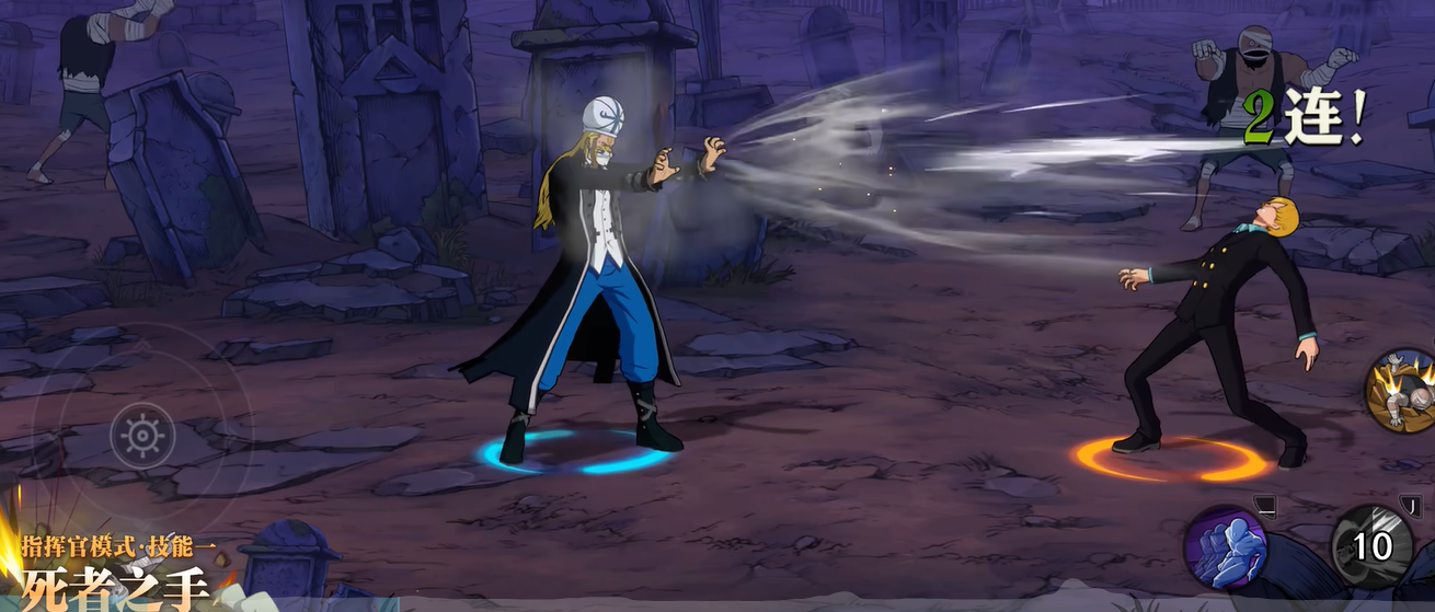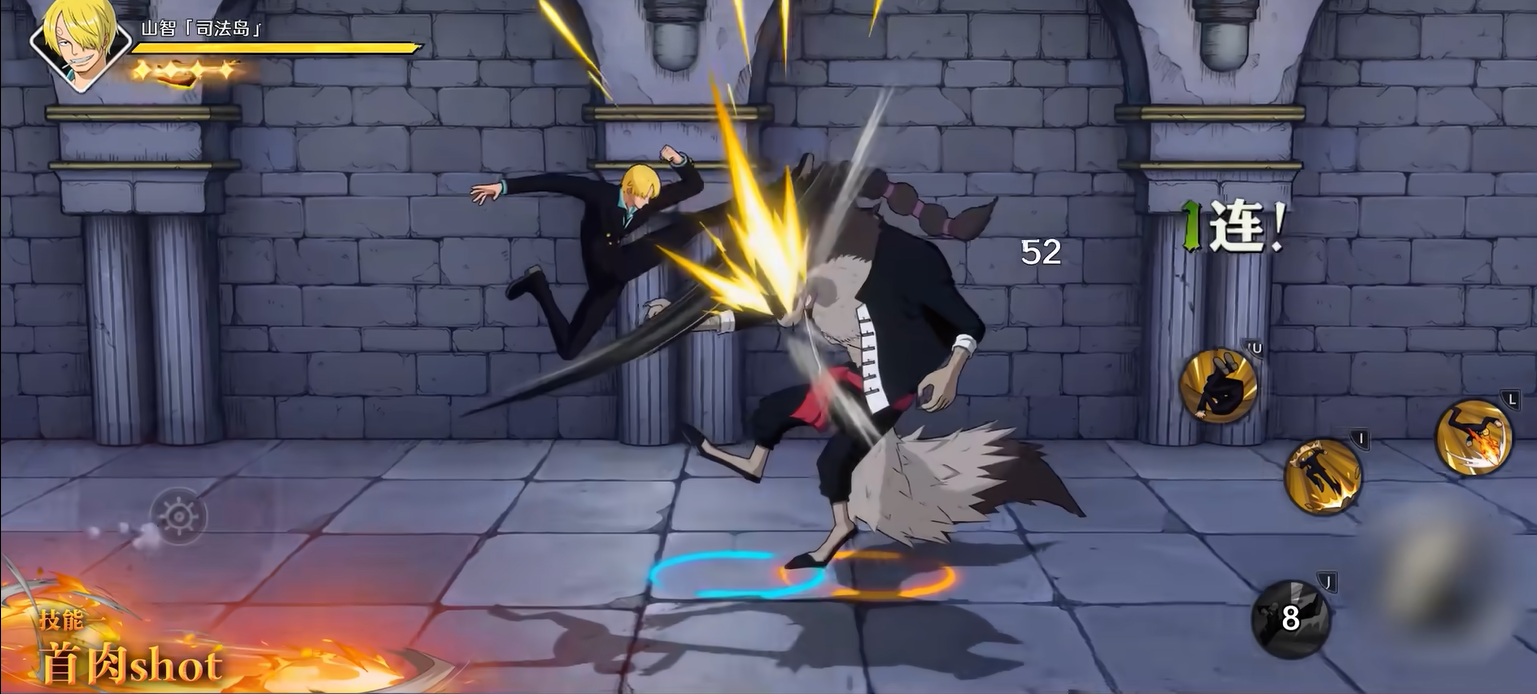 操作山治时,需要充分利用他快速连击和技能衔接的优势。开局可以通过普攻和技能的组合迅速进入恶魔风脚状态,利用其强化效果增加输出。一旦进入恶魔风脚状态,山治的攻击速度和输出能力将大幅提升,持续不断的技能使用和普攻打击是他的制胜法宝。