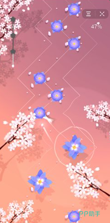 《繁华梦》的画风古风古色,作为一款音乐手游,游戏内置了上百种不同类型的经典音乐,玩家需要根据经典音乐的节奏点触屏幕上的花瓣,游戏内的花瓣颜色是不同的,蓝色的花瓣需要玩家快速的点触,而红色的花瓣需要玩家长按,白色的花瓣需要玩家快速滑动屏幕来进行消除。