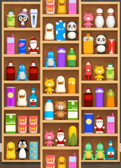 游戏里的操作是比较简单的,开启每一关的挑战之后,玩家将会见到大量杂乱的物品,需要做的就是把这些物品分类整理到货架里,请从简单的音乐加上卡通画面能让玩家体验到轻松的一种氛围,关于这些物品的放置位置和方法是比较自由的,既可以按照相同的颜色,也可以根据品的种类归纳整理。