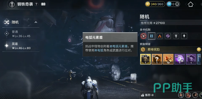 建议等到28,000左右然后进去,否则的话很容易就会被小怪虐,跟普通的模式比较,这一个副本确实会有一些难度,但是奖励还是比较丰富的。在打开挑战页面之后,马上就可以找到钢铁奇袭,在右边关卡机制里面会写得比较清楚。在这个模式里面就会有三种元素护盾,所以在组队的时候就需要及时的补充三种元素的角色,例如可以选择三烈日、二电弧、一虚空。核心的角色那自然是必带狼,还有格温。狼的输出是比较出色的,格温可以补充伤害也能控制战场。