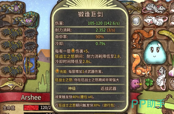 收割者是一个非常全面发展的角色,能够通过毒药发展成为毒爆收割者,给敌人施加持续减血伤害,狂战士是游戏中最简单的一个角色了,只需要通过锻造武器来提升伤害就可以,游戏中除了强劲的角色之外,还有强大的道具武器,玩家每回合都能够使用金币来购买武器,以提升战斗力,平底锅是推荐新手玩家使用的武器,平底锅的特性就是耐力消耗非常低,可以使用非常长的时间。