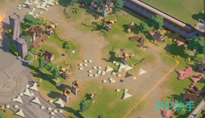 城堡作为核心防御建筑,应建在基地中央。其周围密集布置各种防御塔,如魔法塔、投石机等。魔法塔可对敌方造成持续的魔法伤害,投石机则能对远处目标进行强力打击。不同防御塔相互配合,形成交叉火力网,让敌方难以突破防线。