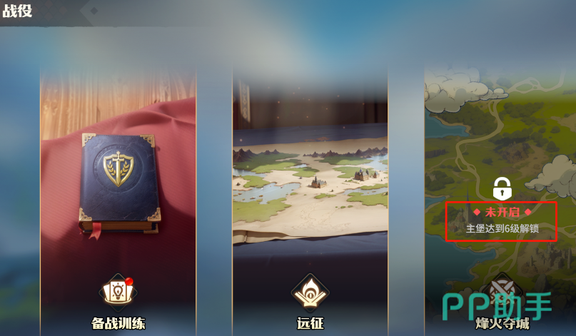 想要开启该玩法,需要达成两个大前提,第1个就是你的主线剧情已经推进到了第5章,第2个就是你的主城已经升到了6级。当确认这两个前提条件已经完成之后,玩家们可以在自己的主界面中看到战役选项亮起,此时通过该选项你就可以直接启动烽火夺城玩法了。总的来说烽火流程其实就是一个闯关的玩法,玩家们需要在这里闯过50个关卡,每一关都会向大家提出不同的要求。