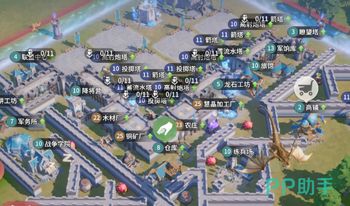 在龙石战争的前期,合理布局至关重要。首先,要优先规划资源采集区域。将采集建筑分散放置,避免集中在一处,以防被敌方一次性摧毁。比如,金矿、石矿等资源建筑,分别安置在基地的不同角落,周围可适当布置一些基础防御设施,如箭塔,以保护资源采集。