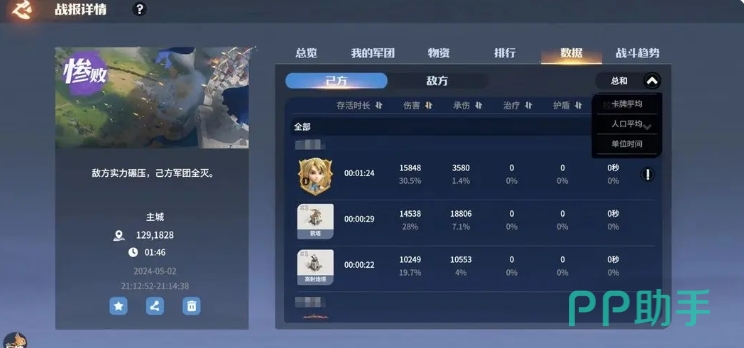 首先在指挥战斗的过程中,战报的重要性很大,战报会记录着战斗中的每一个细微环节,领主们通过仔细研读战报,就像回到战斗现场,这里的数据当中大家要重点关注英雄和兵种的伤害、承伤、治疗、承受护盾、提供控制以及存活时长,卡牌平均数据则更细致,其次就是数量统一的数据,它统计的是每个卡牌单位人口下的各种数据,这一数据能够让领主们更加深入地了解每个卡牌单位的效率和价值,为合理调整阵容和兵力分配提供重要依据。