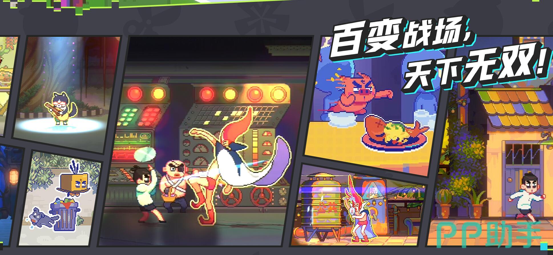 经营系统很治愈:在小鸡岛开理发店,研发空气刘海吸引顾客、牛杂摊解锁经典牛杂秘方,赚的金币用来强化武器。游戏用2D手绘像素还原了动画名场面:鸡大保的便利店闪着霓虹灯,玄武国竹林随风吹动,战斗时背景会动态切换(如从白天到黑夜)。技能特效一点不含糊,伍六七的魔刀千刃挥出彩虹刀光,梅花十三的刺客突袭带紫色残影,玩起来的感受完全不亚于看新番。