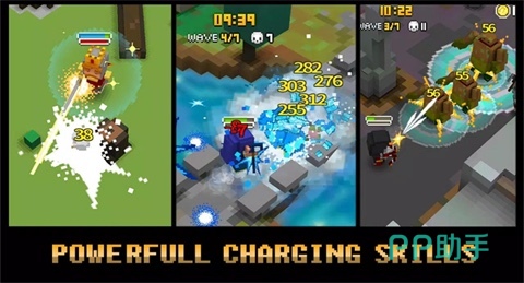 游戏最大的亮点在于它的独特像素美学,复古却不失现代感。角色设计精致,技能释放炫酷,画面虽简约却充满细节,每一场战斗都能让人感受到像素风格的独特魅力。玩家可以选择不同的弓箭手和骑士,每个角色都有自己的技能特色,例如大范围覆盖的箭雨、震慑全场的圣光剑,还有高爆发的蓄力一击。技能释放时的特效充满打击感,让战斗过程充满紧张与刺激。