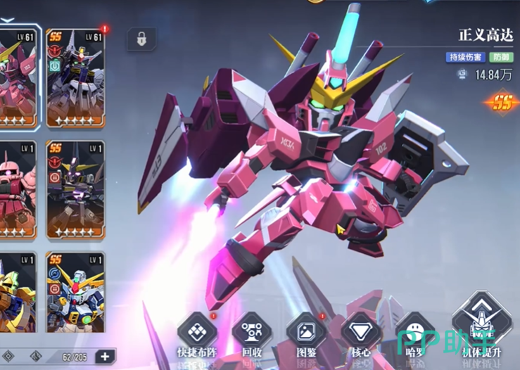 此阵容兼顾输出、控场、防御与群体伤害,各方面较为均衡,适合新手玩家在游戏前期使用,在资源分配上前期可优先将资源倾斜给权天使高达和沙扎比,确保输出与生存能力的平衡,当遇到防御高的敌人时,可以考虑将德天使高达替换为盖亚高达,以增强队伍对高防敌人的打击能力。