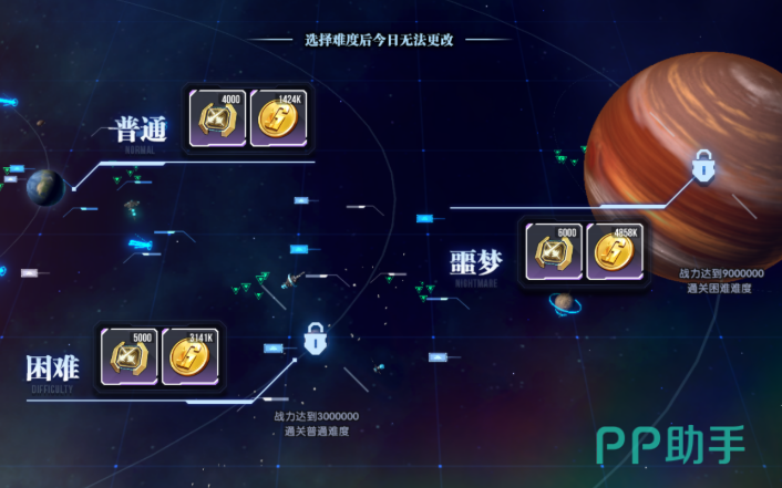 模拟战要求玩家单独保存一套阵容,首次进入时默认采用主线阵容,玩法中的对手皆为其他玩家,分为普通、困难、噩梦三个难度层级,每个难度均设置15关,玩家每日仅能选择一个难度发起挑战,选定后当天无法更改,每成功闯过一关,玩家便能收获相应奖励,每3关会出现一个宝箱,在通关宝箱前的关卡后即可开启,领取奖励后才能继续后续挑战,其中第15关后的大宝箱,内含更为丰厚的奖励,值得注意的是各难度存在战力门槛限制,普通难度无战力要求,困难难度需要玩家战力达到3000000且通关普通难度,噩梦难度则需战力达到9000000并通关困难难度。