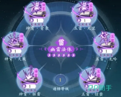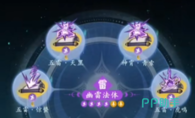 五雷流派的核心神通为五雷·龙吟,搭配天罡、惊垫和虎鸣可以提升法术伤害。