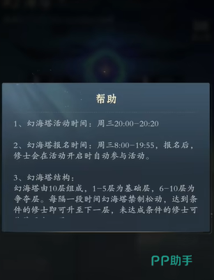 幻海塔活动的参与条件是玩家的修为境界需要达到金丹期,才能够参与到幻海塔的活动中,这一修为限制确保了参与玩家必须具备一定的实力,也是帮助金丹期以上玩家的修为提升和资源获取,开辟了新的道路,幻海塔副本中一共分10层,玩家从第一层开始挑战,当玩家积分足够时,就可以开启下一层的挑战,但是需要注意的要点就是,在争夺层挑战失败之后会导致掉层,所以在每一层的挑战中都要玩家精心的准备各种装备来保证获取胜利。