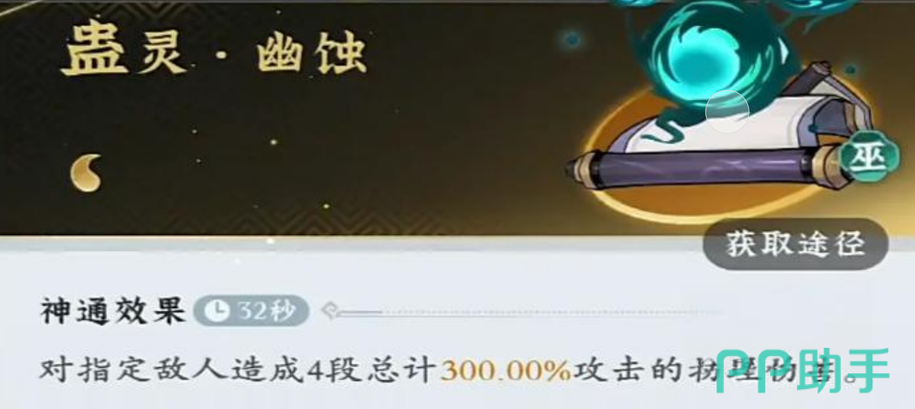 首先是“蛊灵幽蚀”,它能对指定敌人形成4段踪迹300%的物理伤害,特殊效果为在释放任意神通的时候,能对目标随机种下一种蛊,有一定概率额外随机再种下一种,每成功个蛊灵流派神通技,这个概率就会提升25%。