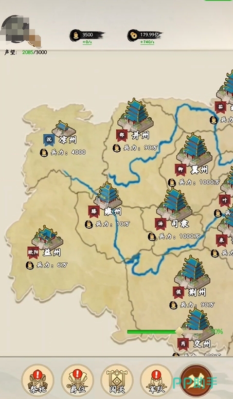 【官职】系统升官,即可提升统帅值和兵力;同时提升你的城市星级,可以提升人口上限,人口数越多兵力越多。