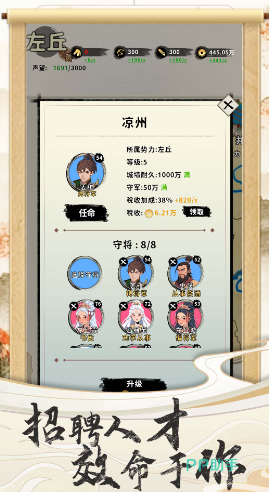 升官速度则需要玩家,根据自己的年龄进行选择,当玩家抵达25岁之前,必须要完成首次升官,随后才可以使用太守的权限,进行城池的攻略,最后不断升官,加大统一进度。