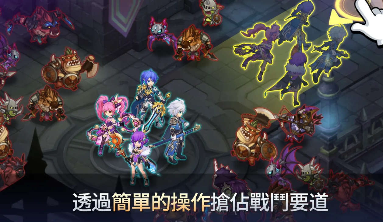 游戏当中玩家所需要做的操作指令只有三个,第一个是进行队列的集结,由于游戏当中的所有角色技能都是自由释放的,并且走位技能的优先级,如果玩家选用的是以攻击敌人为主,那么玩家所控制的角色就会自动被敌人吸引,为了保证战斗策略的稳定性,玩家可以使用集结功能。