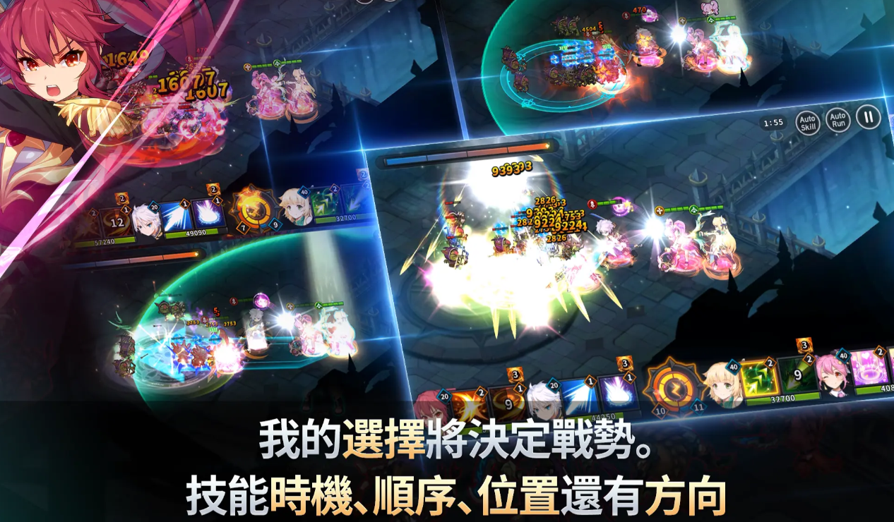 游戏内的战斗方式较为特殊,玩家需要率先招揽军团,并且注意调整各角色之间的战斗位置,游戏的战斗军团动作是完全动态的,例如玩家在魔王城堡之中,可以通过调整位置的方式,远离远程兵的伤害,还能够通过提前观测boss前摇动作,来进行军团位置的迁移。