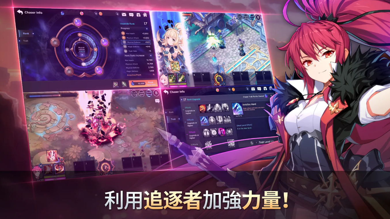 游戏既提供了丰富的PVE副本挑战,还设计了多种特殊模式,让玩家在不同的战斗场景中体验全新乐趣。每个副本都具有独特的难度和敌人设计,挑战性十足。为了让你的英雄在冒险中不断成长,游戏加入了强化、进化、育成和觉醒等系统,玩家可以通过击败强敌、完成任务来获取所需的材料,提升英雄的能力。更有海量装备和稀有道具等你去发掘,成为最强的冒险者。