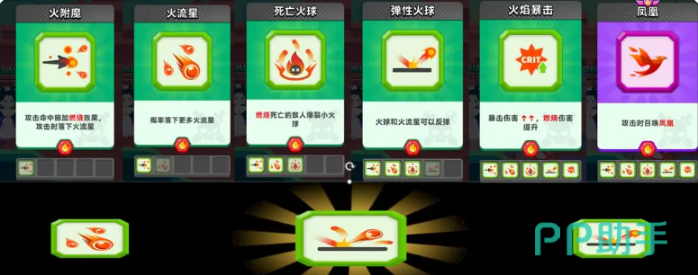 在战斗里面初始选择技能的时候大家要优先选择火附魔,这是火系的主要核心能力,这个能力带来的就是大家在使用此类攻击命中敌人之后,还可以带来额外的燃烧效果,并且有一定的几率可以触发火流星的小伙,火火流星的技能主要是给敌人带来额外的输出频次,而且火流星的落下来的频率,也就是几率会带来额外的群体输出,除了火附魔之外,还有一个死亡火球的技能也是需要点亮的,这个技能点亮之后,大家是可以通过燃烧的效果来将敌人给击杀,只要是被燃烧效果被给击杀掉的敌人,在死亡之后还会爆炸出一个小火球。