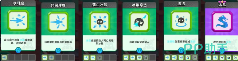 冰系的技能一般都是以控制为主的,而且在范围伤害上面也是比较有优势的,所以在点技能的时候,大家就可以搭配一些散射之类的效果,用来清理一些密集的敌群,进攻的时候效果还是比较好的,开局必选的技能中就是冰附魔的效果,冰附魔会为大家每一次普通攻击带来足够的命中加成效果,且这些攻击只要命中敌人的话,还可以给相应的敌人增加一定的减速影响,在敌人减速之后,大家会有更多的时间可以反应,应对后续涌上来的敌人。
