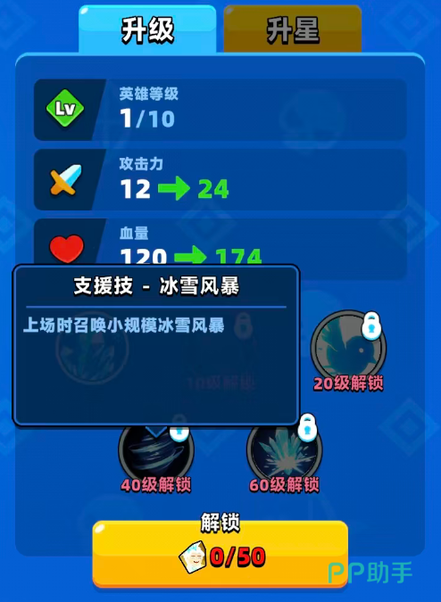40级的时候解锁的是她的支援技能,叫做冰雪风暴,可以在上场的时候就直接召唤出来一场比较小规模的冰雪风暴,处于风暴中的敌人不仅前进速度会受到影响,在风暴当中也会持续掉血,基本是覆盖全屏的一个技能效果,最后再60级的时候解锁的就是冰晶幻影这个技能,使用的时候还是会出现一片雪花特效,不过这一次的雪花在命中的时候,只要碰到了她召唤出来的冰鸟,那么在上面就可以造成爆裂的效果,且会在地图当中出现冰棱柱,这个冰棱柱带来的是范围伤害,且范围还不小,同时给敌人带来的负面效果就是冻结的效果。
