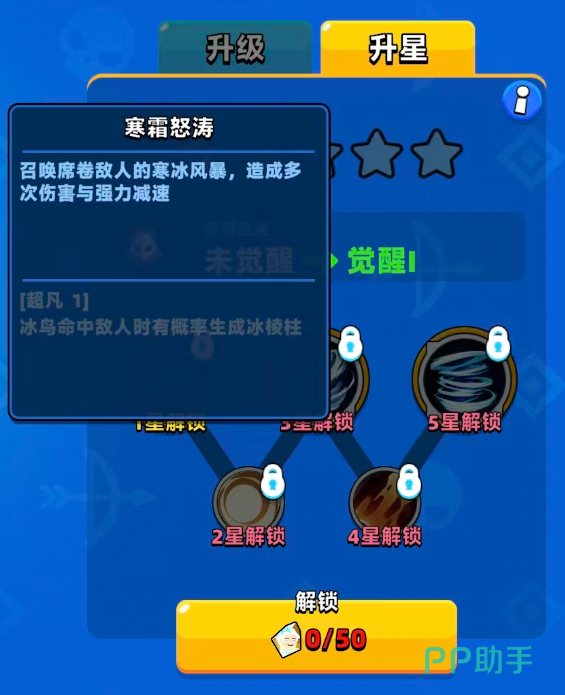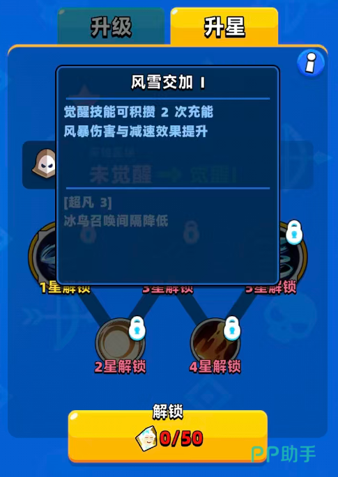 在给冰雪女王升星达到1星的时候,会有一个寒霜怒涛的效果,在上面可以直接召唤一场席卷全场敌人的寒冰风暴效果,这场风暴可以一次造成多次伤害的能力,同时这里造成的影响效果变成了强力减速的效果,会在最大程度上面影响到敌人的行动速度,2星的时候会解锁风雪交加的效果,这个效果在上面是会属于一个觉醒技能的能力,也可以可积攒2次充能之后再用,这样的话带来的风暴伤害数值上面会有很大的提升,且在减速效果上面的提升能力也很强。