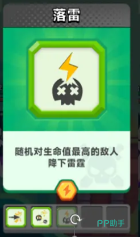 第三个技能就是落雷,落雷这个技能点出来之后,大家在发射空间的时候可以随机对一个敌人进行输出,并且同时降下雷霆攻击,这个雷霆攻击会比普通攻击的数值大几倍,而且这里是随机对一个敌人造成这类伤害,这里的话选择敌人一般都是生命值数值剩下比较高的敌人。
