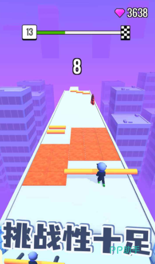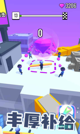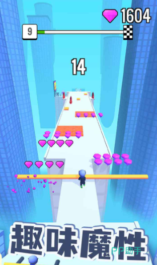 在道路上除了棍子和障碍之外,还有大量紫色的钻石,要把这些钻石全部都收集起来,除了能用钻石购买不同的角色装扮之外,还可以用钻石,来升级玩家手中的棍子,这样棍子变强之后闯关会变得更加轻松,假如遇到对手的话,也能借助棍子的力量攻击这些对手。