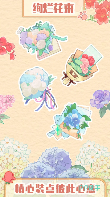 有趣的花束制作系统,让你可以选择不同品种的花朵打造成好看的花束,从花束彩带到外包装纸的选择更是多种多样,经典装饰每一束花满足每一名小动物顾客的要求。很多材料无需氪金,即可通过游戏的金币,在商店中快速兑换获得,让更多平民玩家也能够尽情享受。