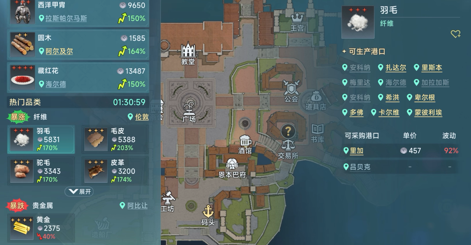 从最基础的开始讲,跑商的关键是经验的获取,而经验的提升直接决定了你是否能够在短时间内提升等级。每次完成交易,你都会获得商业经验,但这里有个小窍门——交易时的利润越高,你得到的经验也就越多。在你刚刚起步时,利润不会非常丰厚,所以不妨从各大港口的流行商品入手,虽然这些商品的利润较低,但毕竟是低风险的尝试,适合新手磨练手感。你可以通过日常的短途航行来积累这些基础经验,为接下来更大的挑战打下基础。