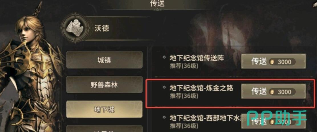 第二阶段要求玩家前往地下城纪念馆(坐标160,294)送饭。关键点在于正确选择传送入口——必须点击小地图左上角的传送按钮,进入“地下城”页签后选择“炼金之路”传送点,若误选其他入口会导致跑图超时,而且传送后,利用小地图的“魔物”分类,选中“暴风骑士团小队”自动寻路,可快速定位流民位置,这个地方怪比较密,新手玩家或者战力不够的话,还是推荐组队或使用隐身药水减少战斗干扰。