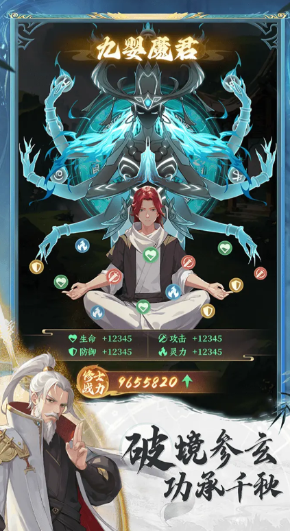 当玩家战胜了这些强大的敌方单位时,可以点亮自身数值,例如生命数值、攻击数值、灵力与值以及防御属性值,随着多个维度的不断提升,玩家的境界也会得到升级。