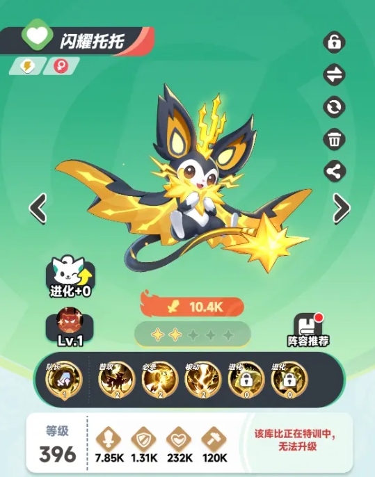 闪耀托托的加入能让刚需回能的电系队又拥有了一只好用的辅助宠,而且它的回能效果没太多限制,可作为电羊上位来使用。
