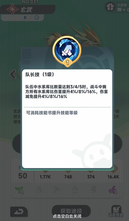 玄武是坦度非常夸张的坦克型库比,而且它的伤害能力也不弱,也有着很强的对群能力,队长技更是能提高队伍里水系宠的输出伤害,同时还能提高不错的减伤效果。在实战搭配中,它的配队方案比较固定,一是以玄武为队长的纯水队,二是同时上玄武和覆海鲨的四水队。