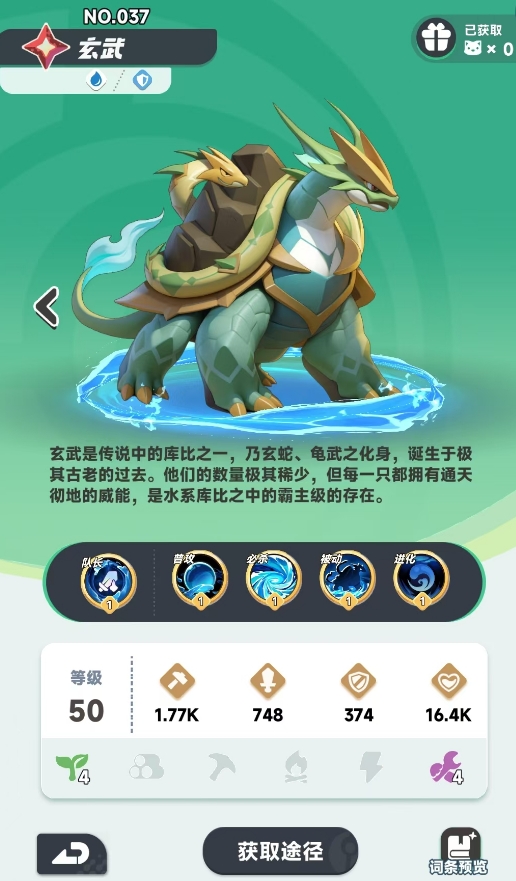 在队伍搭配中,玄武通常担任坦克与控制核心的角色,作为坦克需要在前排承受敌方主要伤害,凭借自身高防御和护盾技能,为后排输出和辅助库比创造安全的输出环境,与其他坦克型库比相比,玄武的优势在于其控制能力,必杀技的眩晕效果能够有效限制敌方行动,为团队提供输出和调整战术的时机,在水系阵容中,玄武的存在尤为关键,它能与水系库比的其他技能效果形成联动。