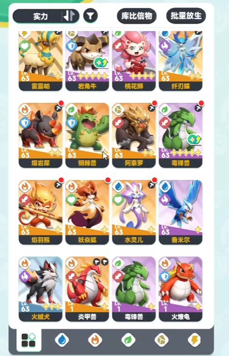 不同属性库比在战斗中存在属性克制关系,这种属性克制在战斗中至关重要,合理利用能让玩家在战斗中占据优势,库比在游戏中还拥有不同的职业定位,有擅长近战输出的,能在近距离战斗中凭借强大的技能对敌人造成高额火焰伤害,瞬间扭转战局,有专注控制的,技能可使敌人减速、冰冻,为团队创造良好的输出环境,在团战中发挥关键作用,还有具备持续输出和群体伤害能力的,能在团战中对多个敌人造成持续伤害,降低敌人防御,削弱敌方整体战斗力。