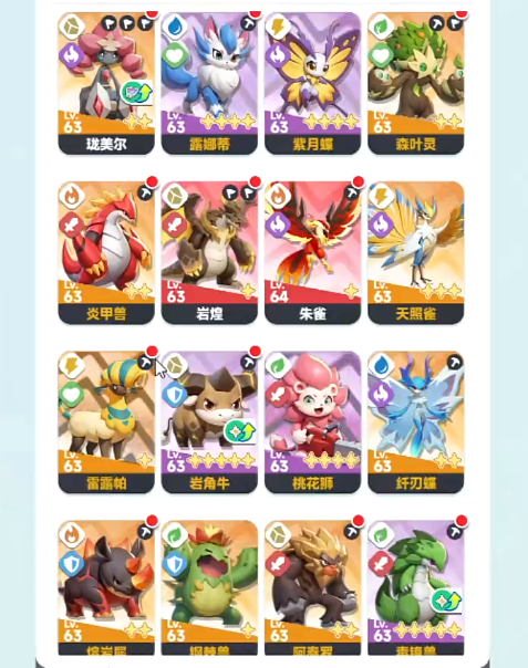 看似这个游戏的设定比较简单,采用的是竖屏模式,但其实游戏里的玩法非常丰富,首先刚开始进入游戏之后,玩家能体验到比较简单的宠物捕捉,会有很多野生宠物散落在场景里的各个位置,这些宠物还会分成不同的属性,玩家可以借助这些宠物,在游戏里进行资源的采集,有了资源之后,就可以在游戏里继续强化这些角色,强化完成之后,精灵的能力就会变得更强,可以以此形成一种循环。