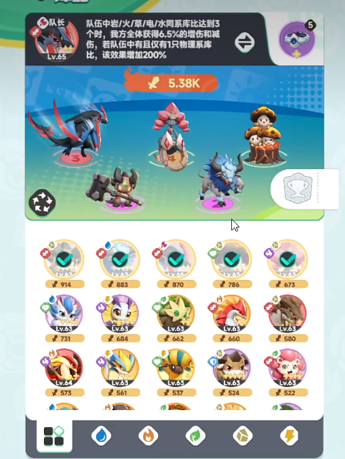 岩系是在前期就能进行组建的队伍,但在前期岩系数量不足以组建纯岩的情况下,最后用三岩加任意两只强力宠的混搭方案来进行搭配,其中三岩为巨锤灵、岩角牛和阿泰罗,两只强力宠可为任意输出或辅助,只要不是坦克宠就不会触发上阵双坦克导致的气势低落效果。