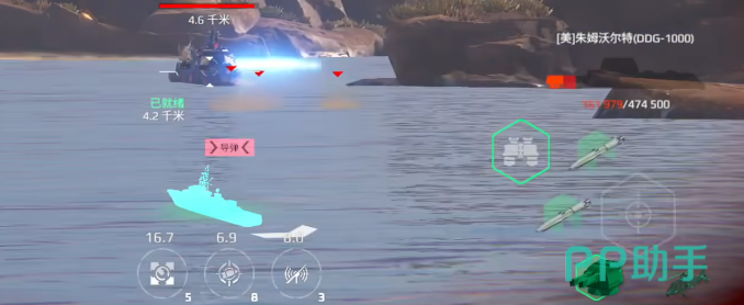 对于那些经验丰富的高端玩家来说,朱姆沃尔特号绝对是性价比很高的战舰,而在战术运用方面,这艘战舰的武器布局当中大家要注意三枚导弹位于前方,一枚在后,双主炮则放在舰首,精明的玩家会充分利用这一特点,采用卡山战术,所谓卡山,即将战舰隐匿于山体前方,仅露出部分舰体和武器,既能对敌人发动突然袭击,又能躲避敌方锁定武器的精准瞄准。