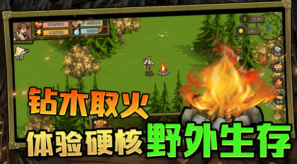 为应对这些环境挑战,玩家需掌握丰富的生存技能,在河边选取直挺的树枝,搭配柔韧的藤蔓制作简易鱼竿,耐心等待即可钓起不同种类的鱼,既能补充饥饿值,鱼肉经烤制后还能提供额外的体力加成,在森林深处收集干燥的松果与树皮,用打火石摩擦生火,火焰不仅能驱散野兽,还能将生肉烤制成熟食,避免食用生食导致角色腹泻,影响行动能力,资源采集与物品制作系统是生存的基础支撑,游戏中的资源分布与地形深度绑定,森林是木材、草药与野果的主要产地,不同种类的树木砍伐后获取的木材属性略有差异。