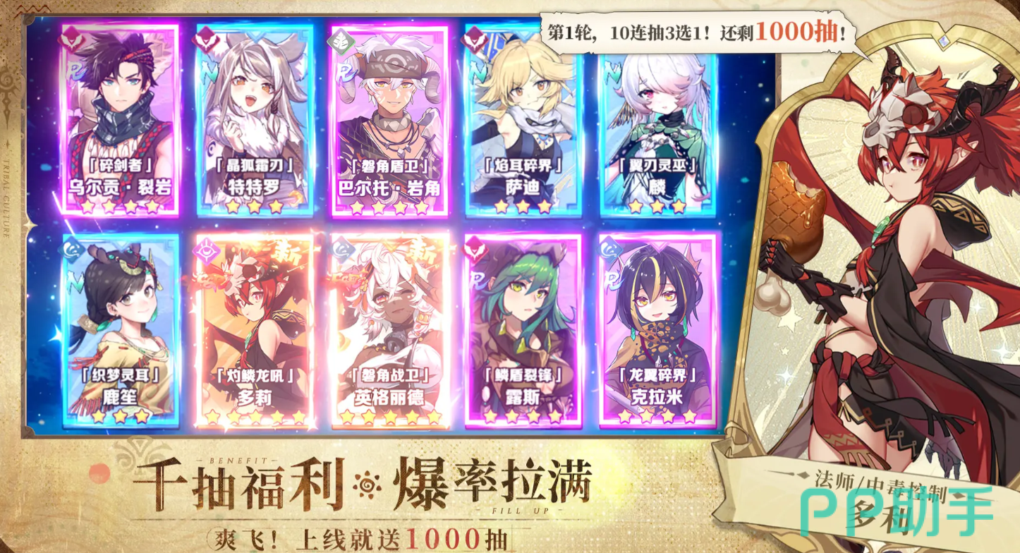 开局解锁「千抽福利」,SSR自由不是梦!无论是猫耳异瞳的治愈系萌妹,还是黑皮兽角的输出型御姐,通通都能轻松收入囊中~