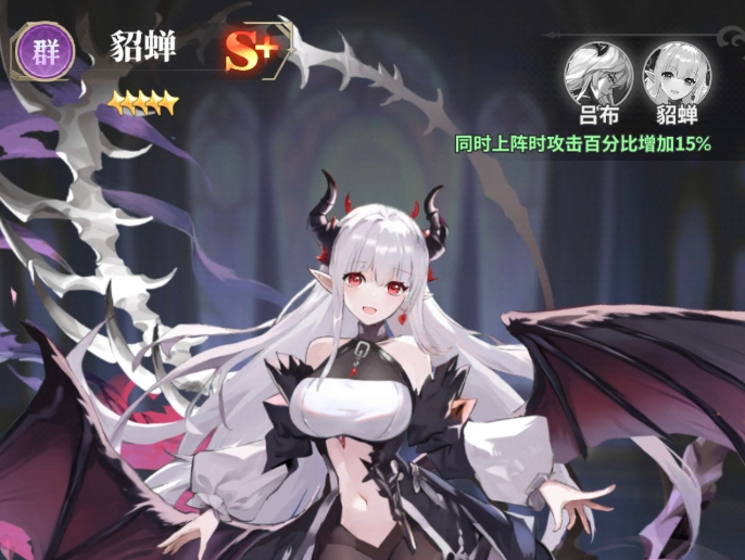 另外还有貂蝉在这里的话,她的技能效果有一定的概率可以魅惑到敌方单位,如果成功的释放魅惑的话,那么这里吕布会对这类目标追加一次普攻,并且在其中普攻的追加是必定会命中的,当然如果魅惑能力失败的话,没有成功的施加给敌方,这里给吕布带来的是一点怒气加成,而且减少掉敌人身上一点怒气之后,还会降低这个角色的攻击能力,所以貂蝉在这里基本能力都是通过给吕布带来加成,和对敌人带来减益来进行产生影响的,她目前用法上面基本都是跟吕布一起上场,才会出现更多的羁绊加成以及绑定能力,所以她跟吕布一般都是双人同步出现的。
