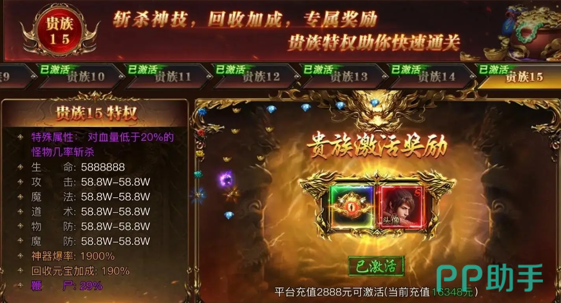 当然刷怪也是大家不能避免的,这里刷怪的主要目的就是获取更多的圣装,有了圣装的加成,大家的战力才会提升到最高的等级,参与修真修炼室的话,大家可以获取到很多的圣装材料,所以这个玩儿法大家上一定要花时间,高级的圣装一般来说都是一个套装,套装相比散装来说战力加成会更多,不过在转生的圣装材料上面,大家挂机可能获取的数目不多,所以需要大家手动去刷怪,最后就是在上面说到的氪金上,大家还可以花58元去进行解锁氪金,这样在有了贵族VIP之后,还可以解锁自动续航和失去特权,此时的增益才是最大化的,也是性价比比较高的选择。