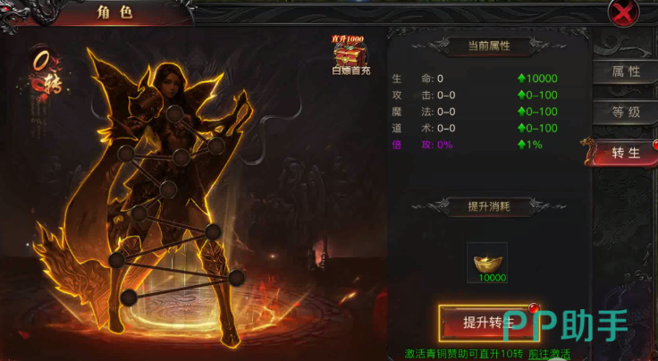 其次在装备上面,大家一定要记住,获取的金币资源更多,大家可以强化的次数就更多,如果在本身的能力上面想要增强更多属性的话,那么还是建议大家获取转生丹这个道具的,这个道具目前是可以在商店中购买,但是因为购买的次数有限,而且价格不一,所以大家可以蹲守活动,在活动期间打折购买的话性价比是最高的,而且转身之后大家获取的经验也是更多的,建议想要获取更多经验的玩家可以尽快进行转生。